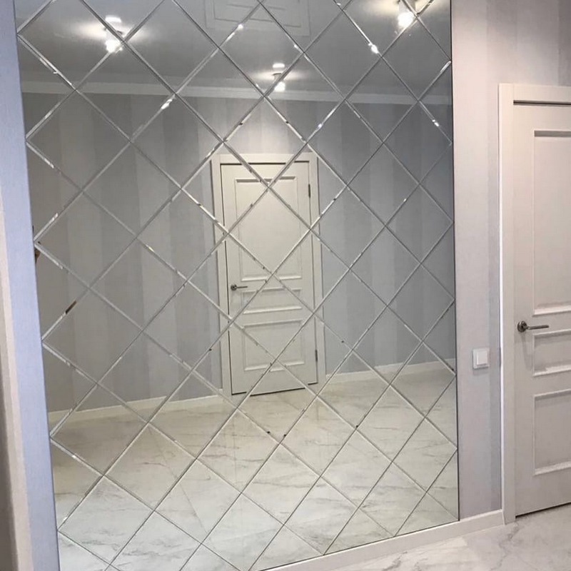 Использована зеркальная квадратная плитка с фацетом.